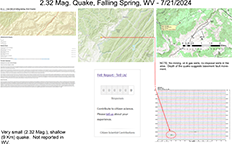 image of map and information pertaining to the July 21, 2024 West Virginia earthquake Sunday, July 21, 2024, Falling Spring, WV - 10:47 PM (EDT)